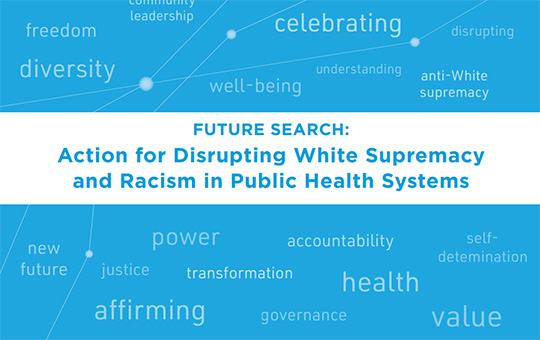 ![]() Future Search: Action for Disrupting White Supremacy and Racism in Public Health Systems Virtual workshop with public health researchers, policy-makers and practitioners on building anti-racist public health systems. Partners: IPPH, National Collaborating Centre for Determinants of Health (NCCDH) |