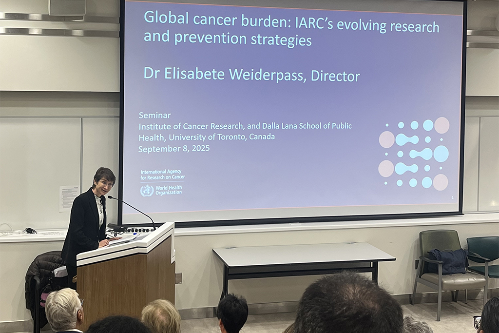 I also feel privileged to have hosted the Director of IARC, Dr. Elisabete Weiderpass, as a Visiting Professor in Canada earlier this month. Over the course of a week, Dr. Weiderpass visited Toronto and Ottawa, and shared her wealth of knowledge and insights on IARC’s initiatives with the Canadian cancer research community, and senior members of our federal government. I am so grateful to Dr. Weiderpass for taking the time to visit us, engaging with both our researchers as well as Canada’s cancer and public health leadership.