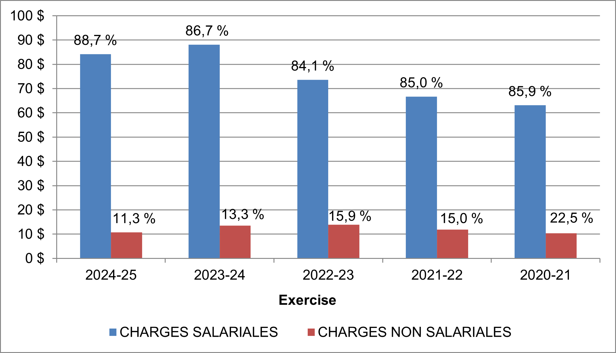 En 2023-2024, les charges s'élèvent à 6 347 $ (6 029 $ en 2023-2024). Pour les membres du groupe 1, les charges correspondent à environ 1,02 fois (1,02 fois en 2023-2024) les cotisations des employés et pour les membres du groupe 2, à environ 1,00 fois (1,00 fois en 2023-2024) les cotisations des employés.